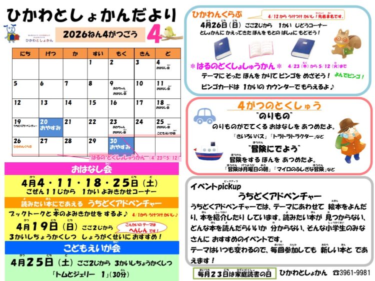 3月28日のおはなし会にご参加いただき、ありがとうございました。 今回は『はなさかじいさん』や『わたしはだあれ』などの絵本や大型絵本を楽しみました。 『ちびくろさんぼ』は長いお話でしたが熱心に聞き入っていました。 『どこ…