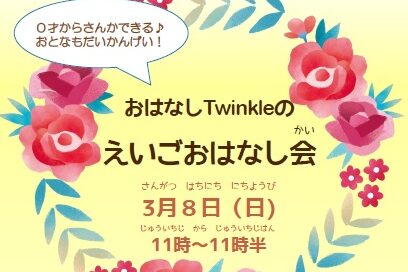 【予告】3月8日えいごおはなし会 2026年3月4日 イベント告知 氷川図書館ではえいごの本の読み聞かせをしたり、 えいごの歌をみんなで歌うえいごおはなし会を開催しております。 えいごが初めての方のご参加も大歓迎です。 3月8日(日)午前11時より3F視聴覚室にて開催いたします。 ぜひご参加下さいませ。 Share: Older Post 【氷川図書館リニューアルオープンのお知らせ】 Newer Post 【予告】3月15日(日)アニマシオンのお知らせ
