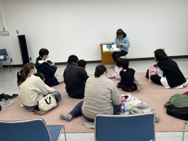 今回のおはなし会では『きいろいのはちょうちょ』や『いきものどうやってねるの?』などの絵本や大型絵本を楽しみました。