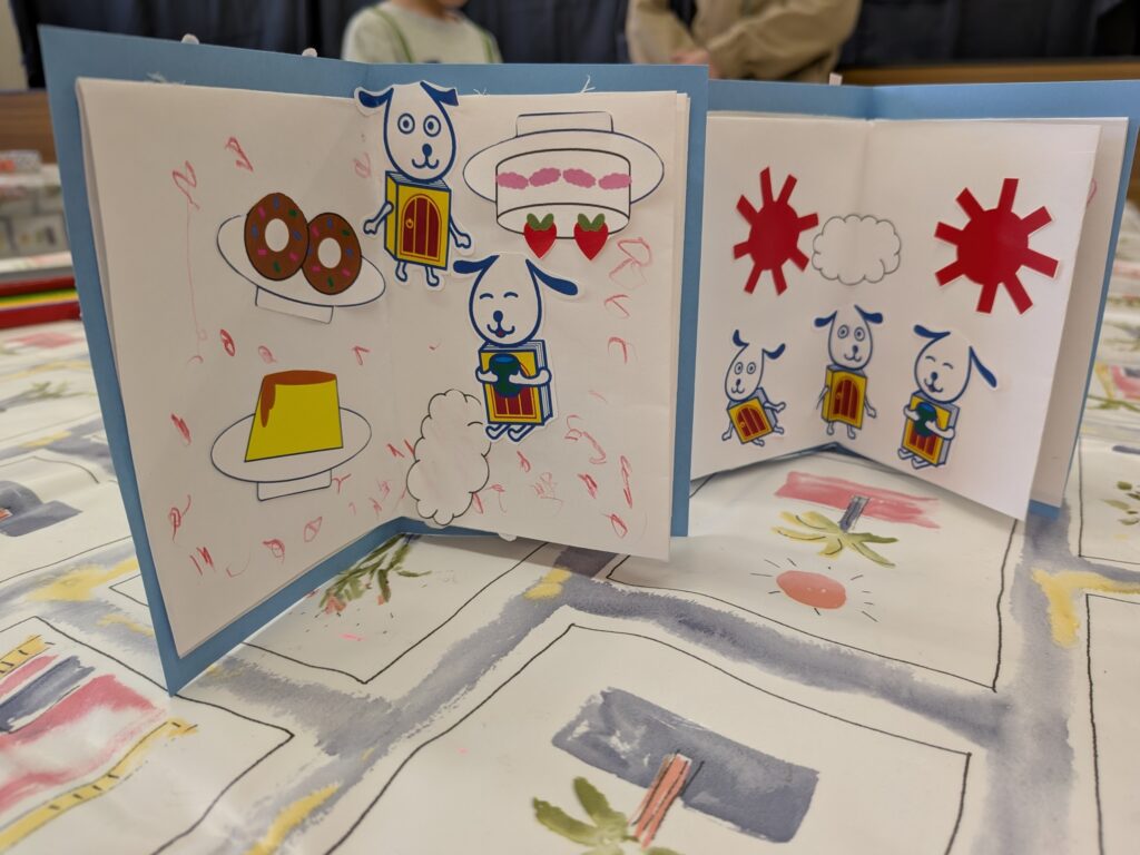 工作会では画用紙で「ミニ絵本」を作りました。