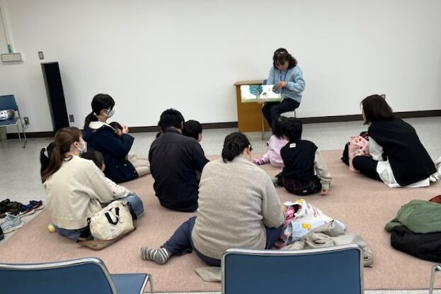 今回のおはなし会では『きいろいのはちょうちょ』や『いきものどうやってねるの?』などの絵本や大型絵本を楽しみました。