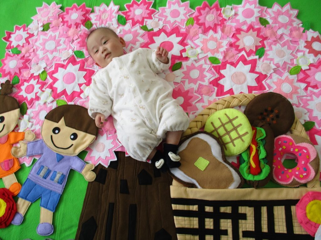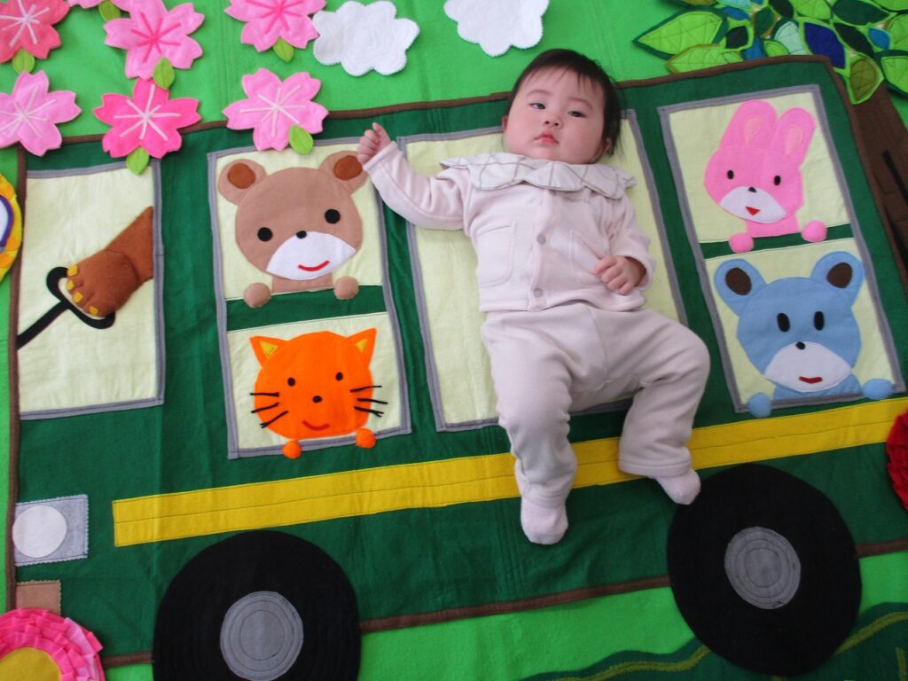 3月のあかちゃんアートのテーマは前回と同様「春」。バスやピクニックを背景とした春らしいアート写真を撮影しました。