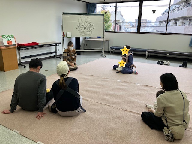 おはなし会の後はみんなで輪になって自己紹介を兼ねた遊びをしました。