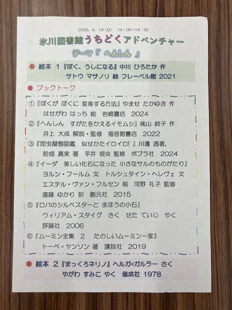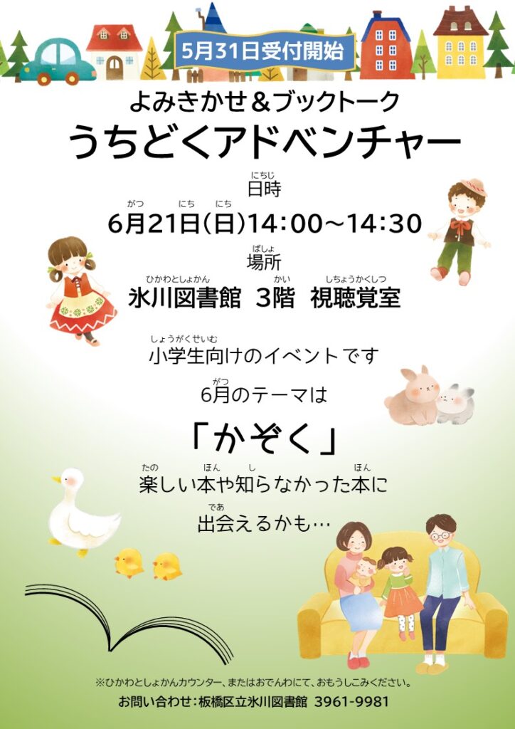 次回のうちどくアドベンチャーは6月21日(日)の予定で、テーマは「かぞく」です。