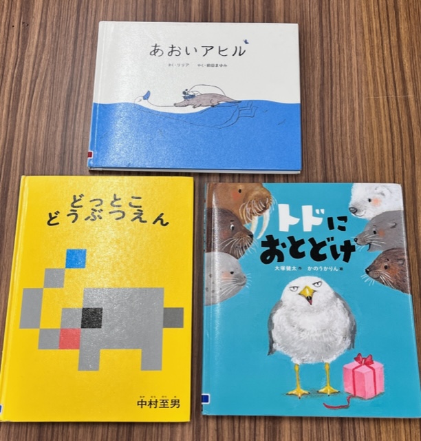 文字のない絵本『どっとこどうぶつえん』の動物当てクイズで盛り上がり、『トドにおとどけ』でもたくさん笑っていただきました。