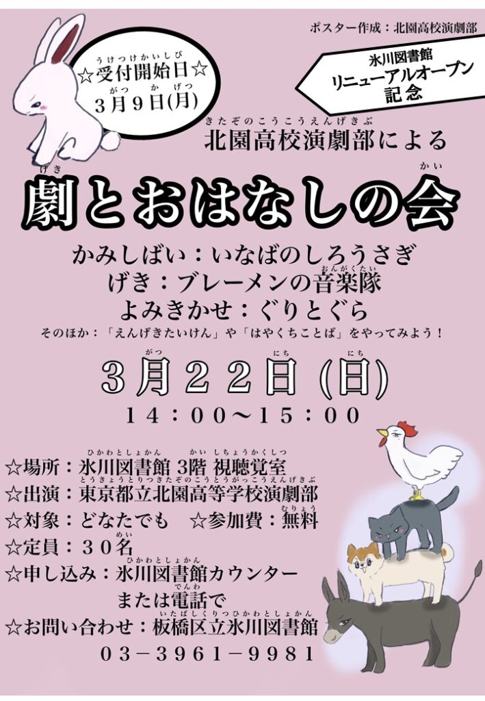 【予告】いよいよ今週末!氷川図書館リニューアルオープン記念企画 北園高校演劇部による「劇とおはなしの会」