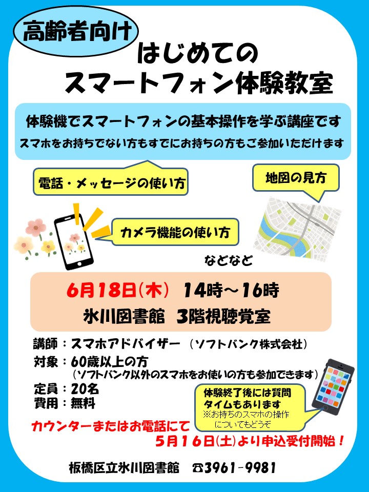 【予告】高齢者向けはじめてのスマートフォン体験教室のお知らせ
