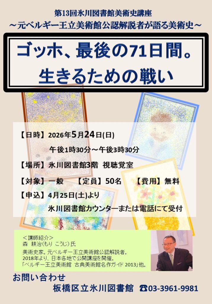 【予告】5月24日(日)第13回氷川図書館美術史講座のお知らせ