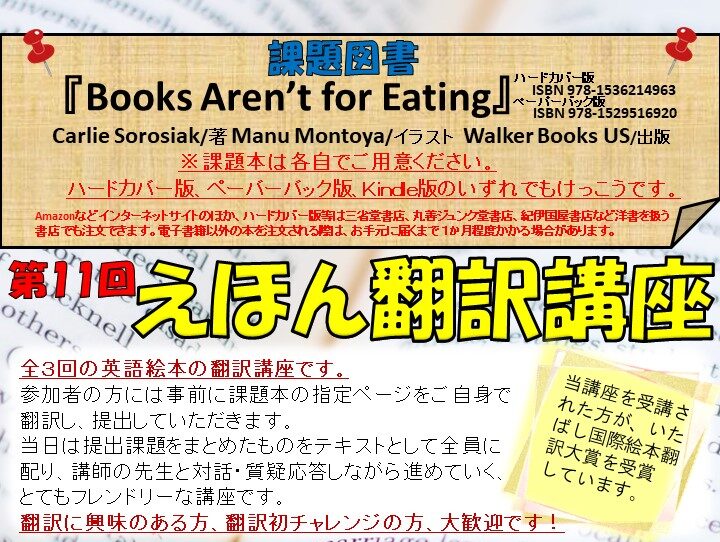【予告】6月7日(日)、21日(日)、7月5日(日) 第11回えほん翻訳講座のお知らせ
