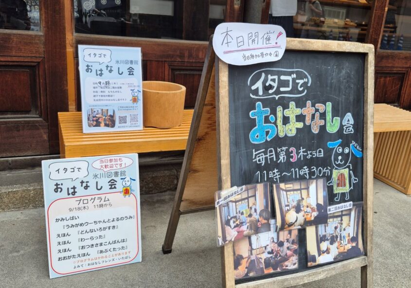 9月18日(木)、小さな絵本館の板五米店さんで、イタゴでおはなし…