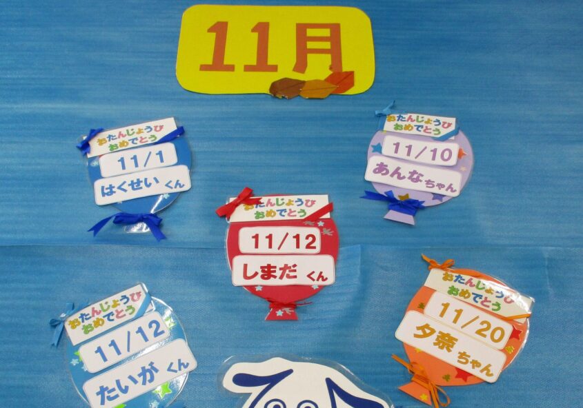 おたんじょうびバルーンとは、氷川図書館の児童コーナーの壁面にあっ…