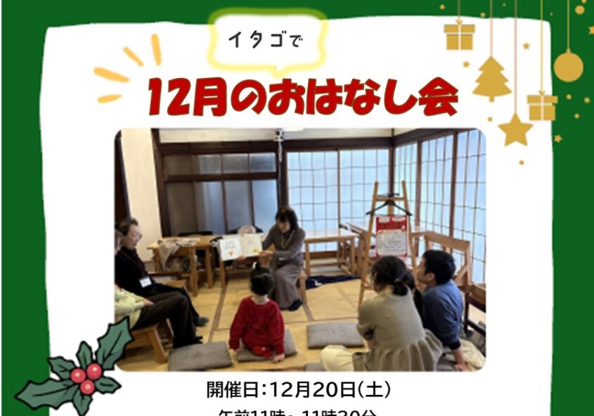12月の「イタゴでおはなし会」のお知らせです。 日時 12月20…
