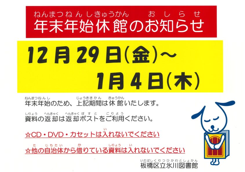 いつも氷川図書館をご利用いただき、ありがとうございます。 12月…