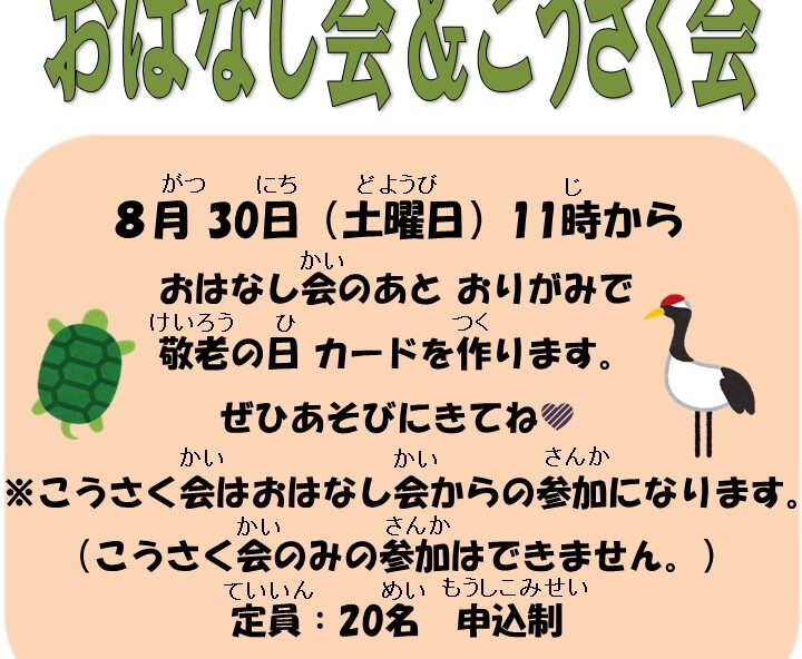 8/24(日)の午後2時からひかわんくらぶブックスタンドこうさく…