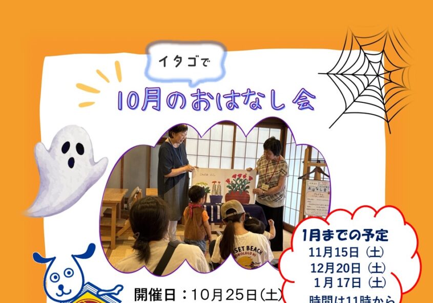 10月の「イタゴでおはなし会」のお知らせです。 第3木曜日に開催…