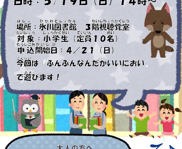 3月25日(月)より、氷川図書館 第9回えほん翻訳講座の募集を開…