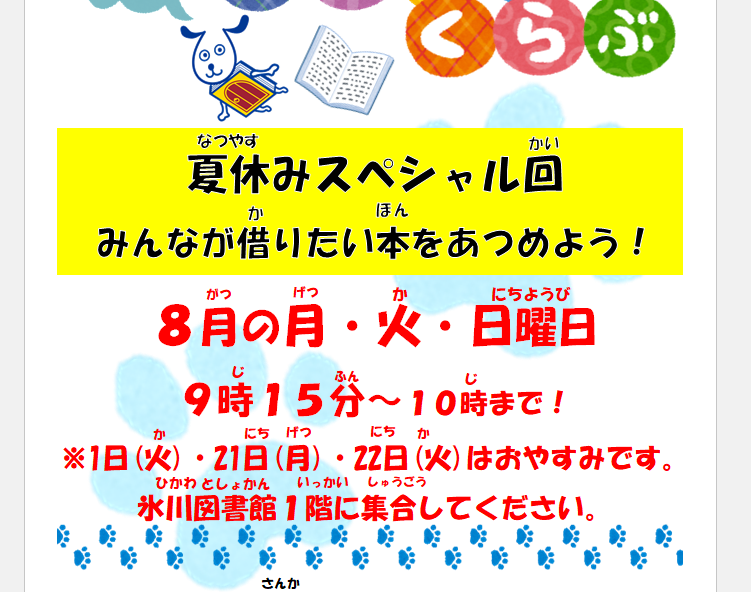 うちどくアドベンチャー開催のお知らせです! 8/20日の日曜日午…