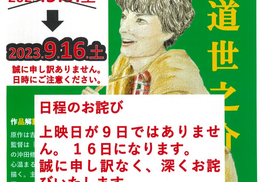 館内ポスターならびにチラシの一刷では9月9日(土)となっておりま…