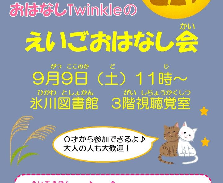いよいよ明日開催! 9月9日(土)えいごおはなし会のお知らせです…