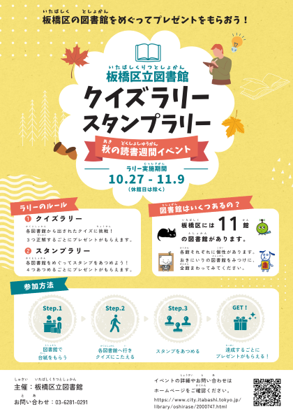 板橋区立図書館恒例!秋の読書週間に合わせたクイズラリー・スタンプ…