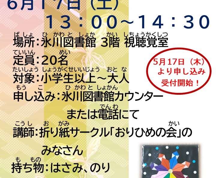 5月17日から申し込み受付開始です! 日時:6月17日(土)13…