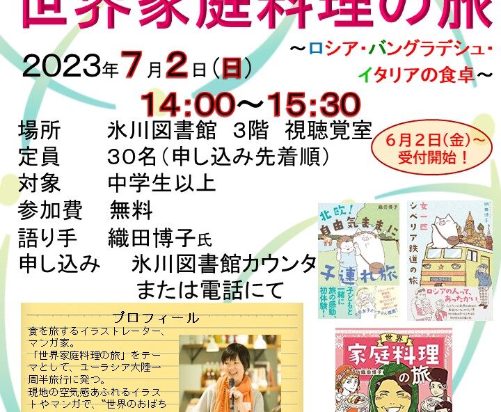 食を旅するマンガ家 織田博子さんによる旅と食のトークイベントです…