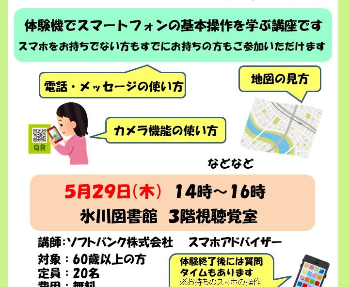 来週開催の「スマートフォン体験教室」ですが、まだ空きがありますの…