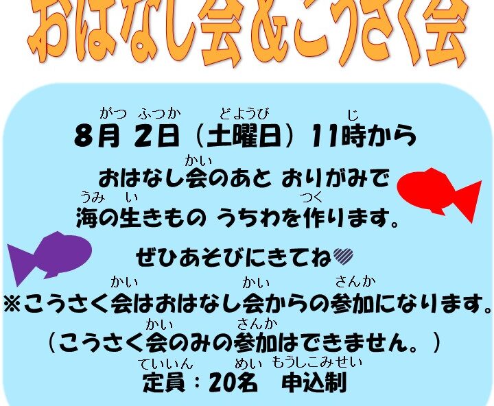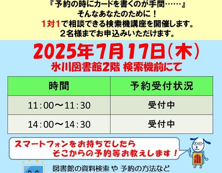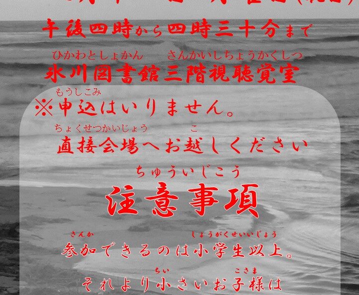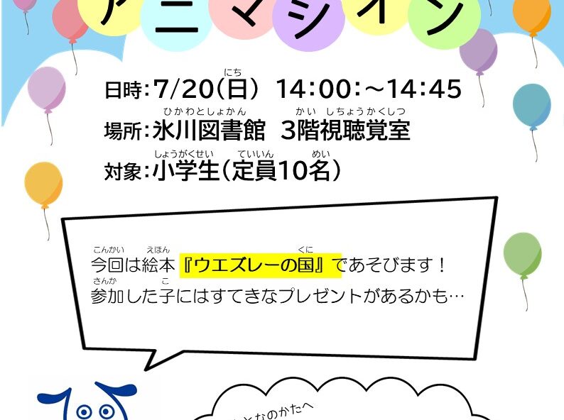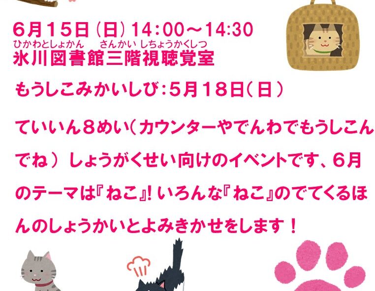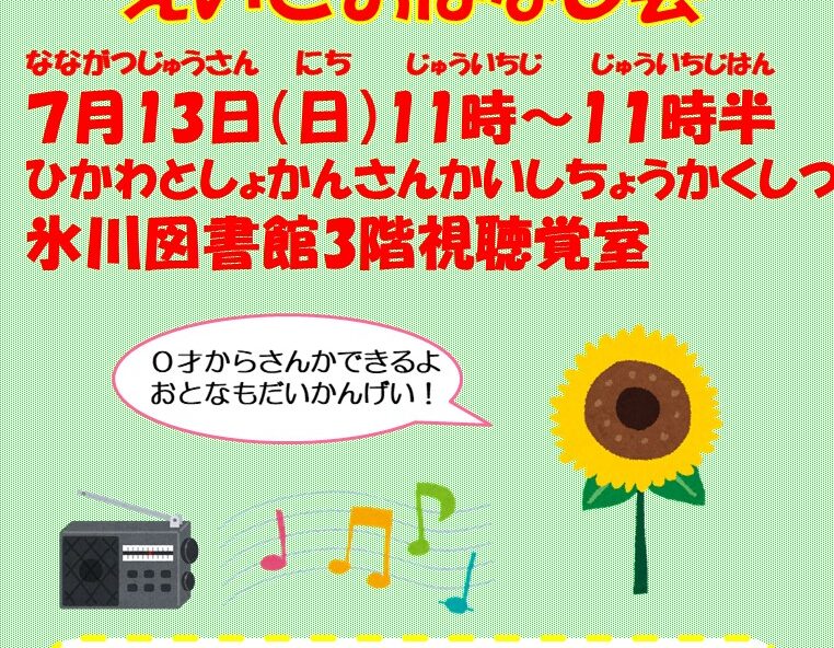 日時:7月20日(日)14時~14時45分 場所:氷川図書館 3…