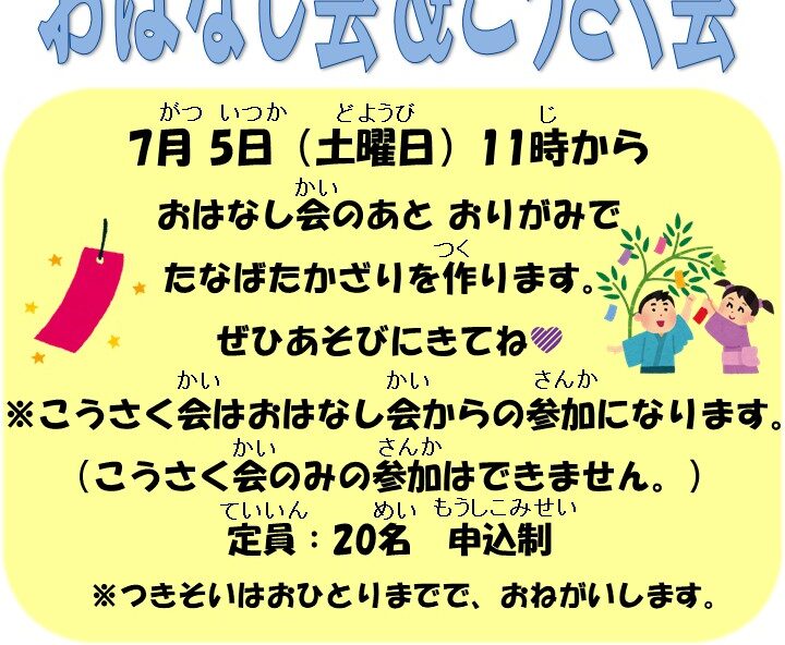 【日時】 7月5日(土)11:00から 【場所】 氷川図書館 3…