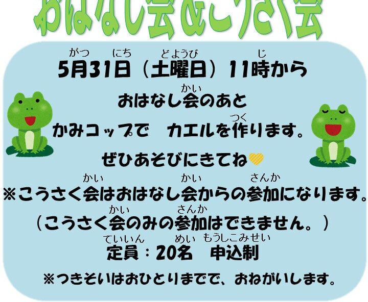 ぴょんぴょんはねるよ! 【日時】 5月31日(土)11:00から…