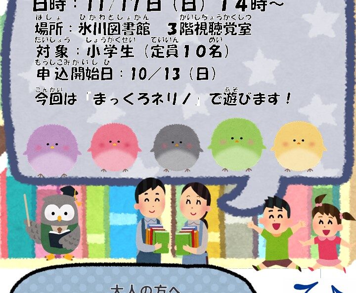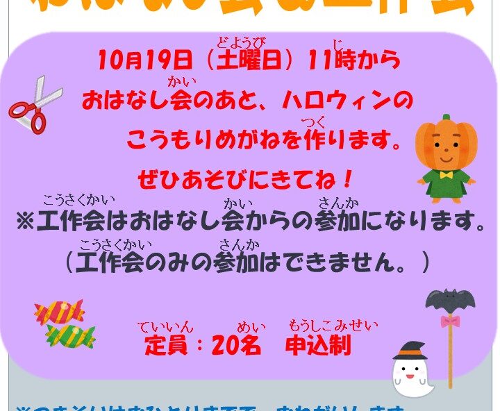 10月13日(日)午前11時よりおはなしtwinkleさんによる…
