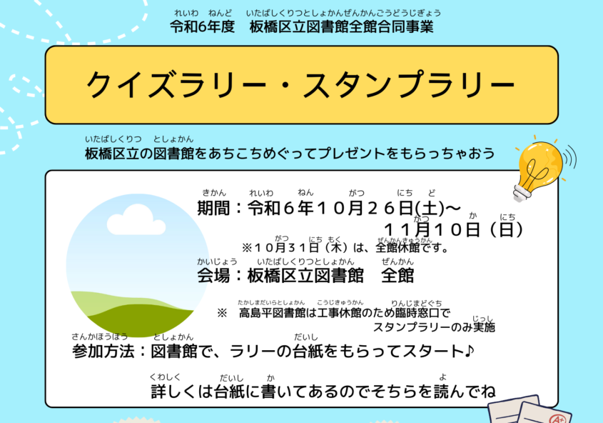 板橋区立図書館 恒例! 秋の読書週間に合わせたクイズラリー・スタ…