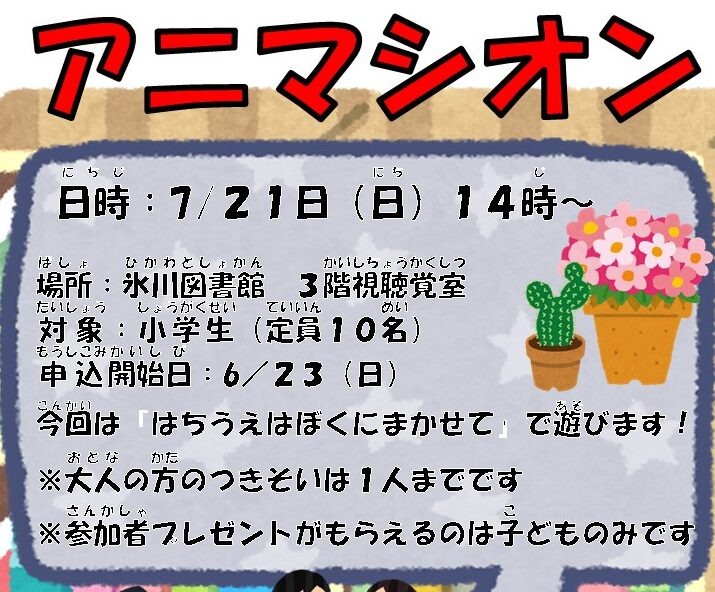 7月の定例アニマシオンの募集を開始しました!皆様のご参加をお待ち…
