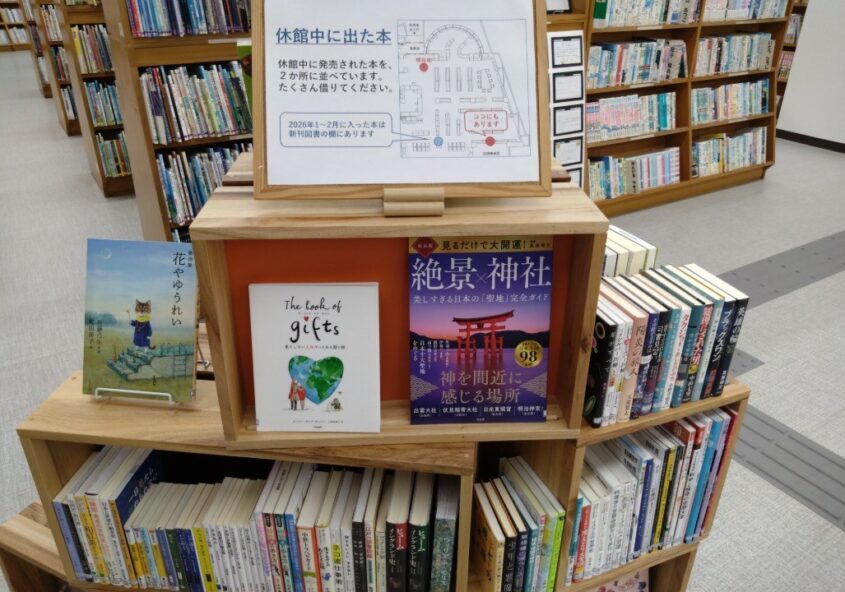 大特集『休館中に出た本』(場所:1F 入り口を入って正面の棚と大…